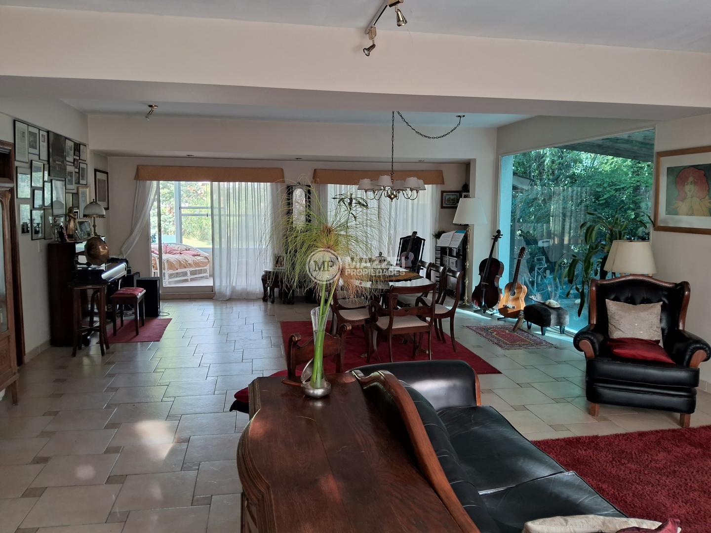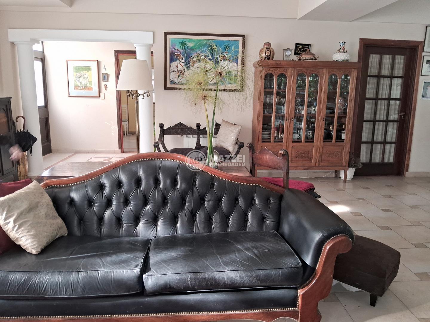 Hall de entrada, puerta dble de acceso principal, living con hogar a leña y enormes ventanales que dan excelente luz natural. Pisos cerámicos. Luces localizadas y empotradas. Toillete de recepción.