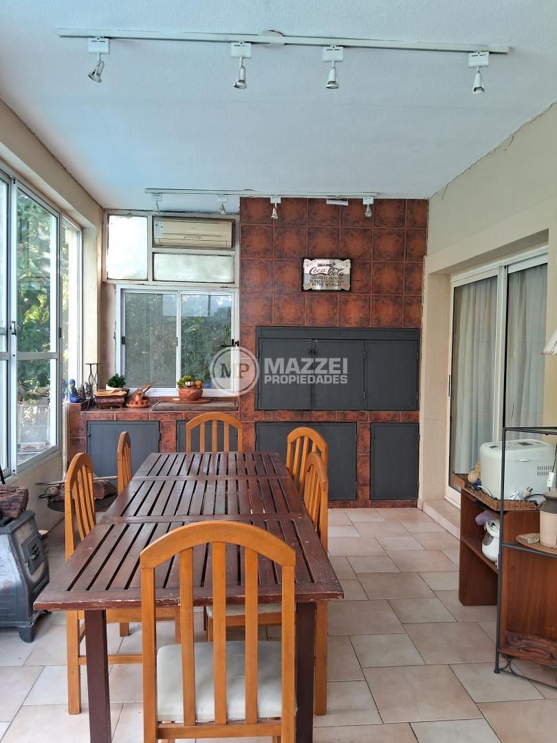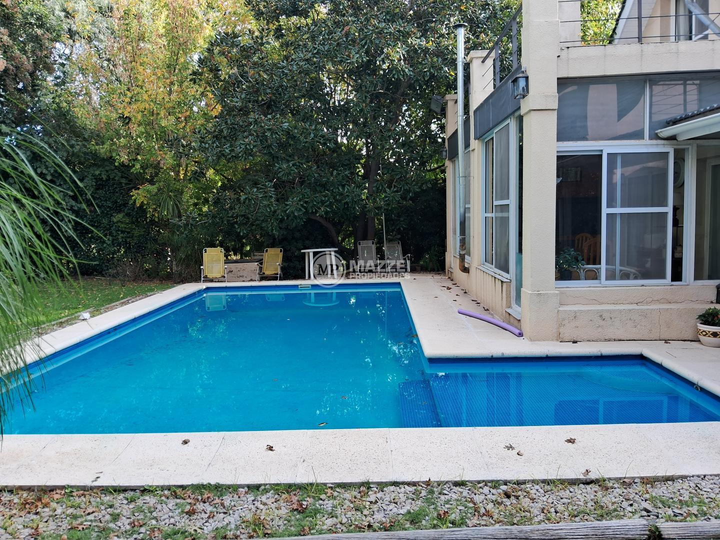 Galería abierta y pileta de 10 x 5 con playa húmeda y equipo completo. Jardín totalente parquizado, con riego por aspersión.