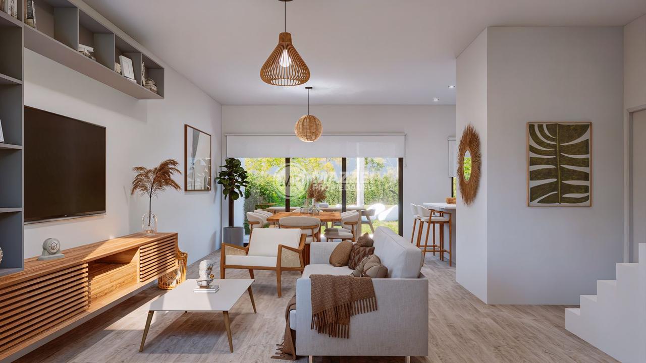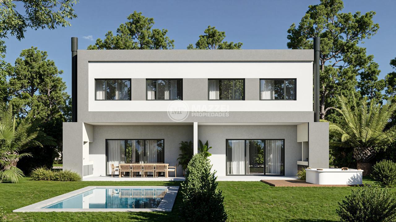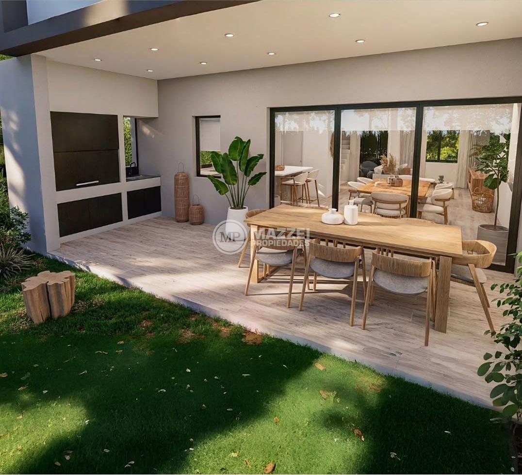 Planta Baja: Living–comedor integrado de gran amplitud (6,50 x 6,53). Cocina moderna con isla, horno, anafe y campana. Toilette de recepción. Lavadero. Galería semicubierta (6,10 x 3,00) con parrilla y bacha. Jardín privado. Espacio previsto para pileta (opcional). Cochera para 2 autos.