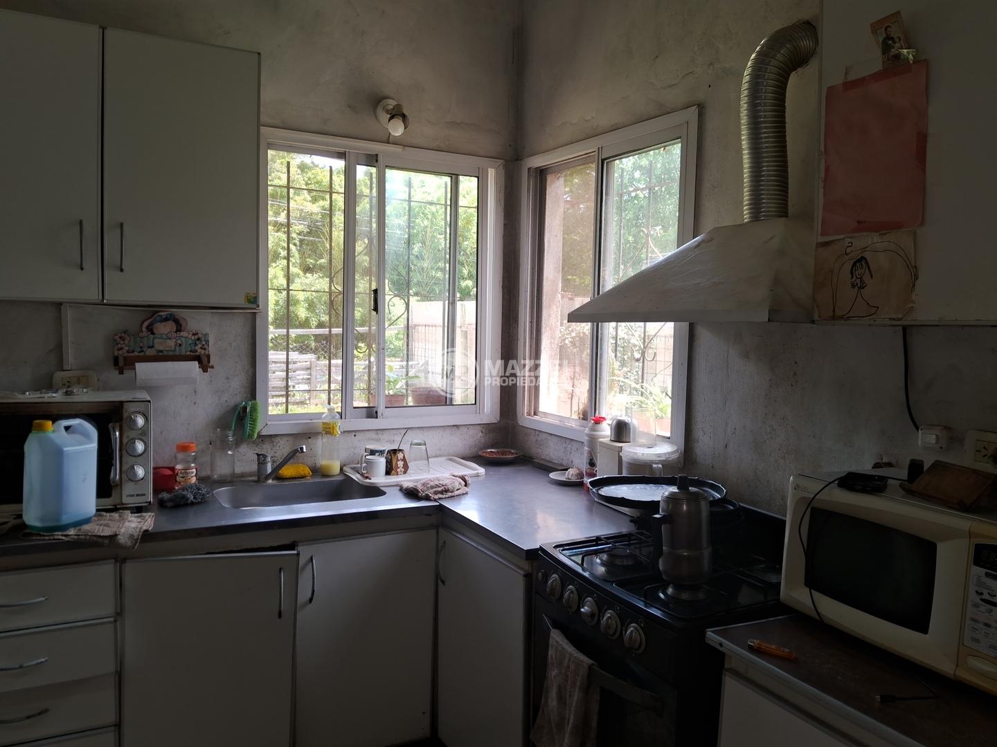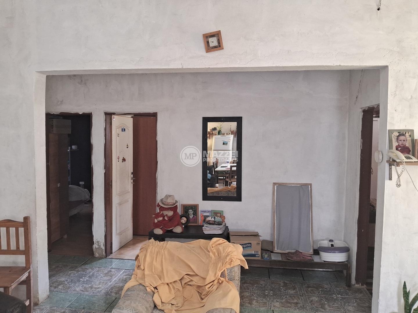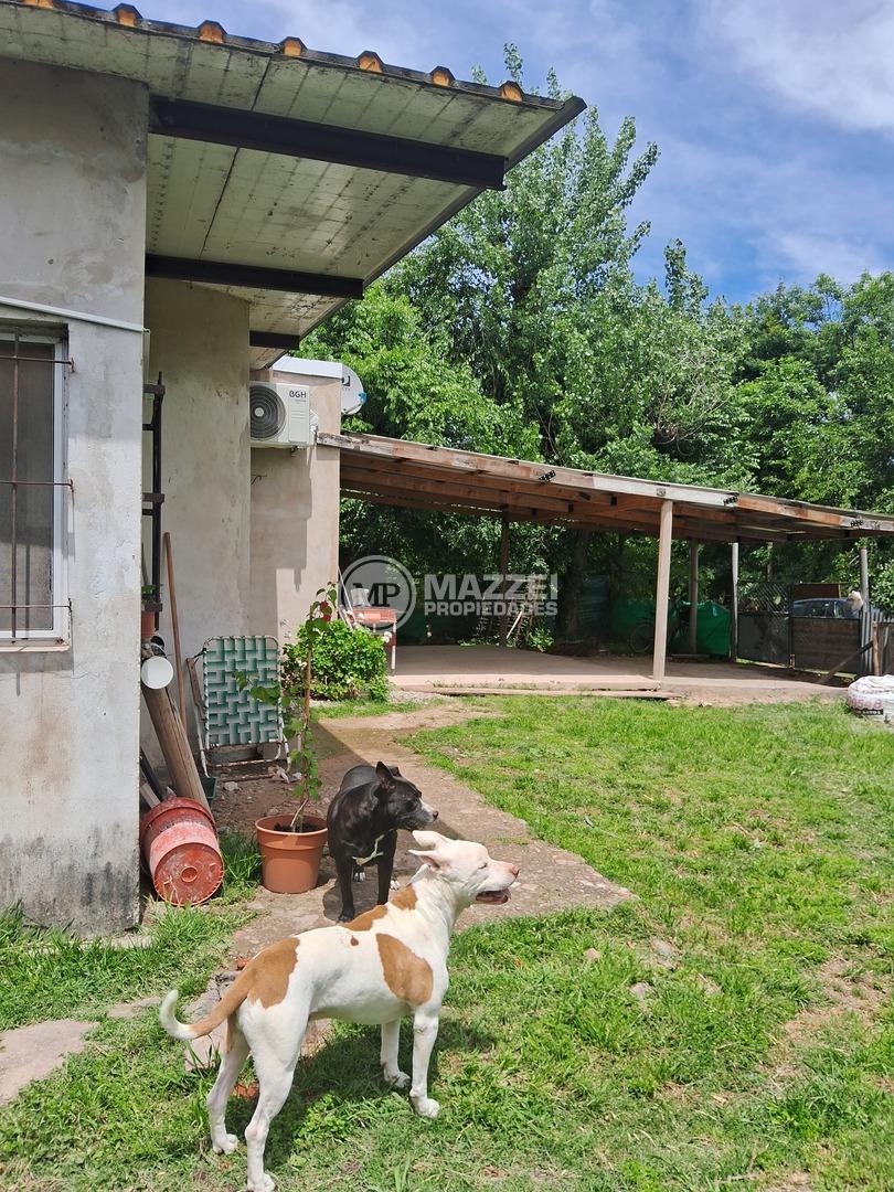 Casa estilo campo, desarrollada en una planta. Cuenta con amplio living comedor, con hogar a gas, integrado a la cocina, que cuenta con mesada con bacha, mueble bajo mesada, alacena, campana de extracción. Pasillo de distribución, antebaño. Baño completo con ducha. Tres dormitorios. Galería techada al frente de la casa, con espacio para vario autos (se entrega con el piso de hormigón terminado). Lavadero descubierto al fondo. Galpón/depósito separado de la casa. Pisos cerámicos. Techo de losa, con posibilidad de construir en una segunda planta. Cielorraso de PVC.