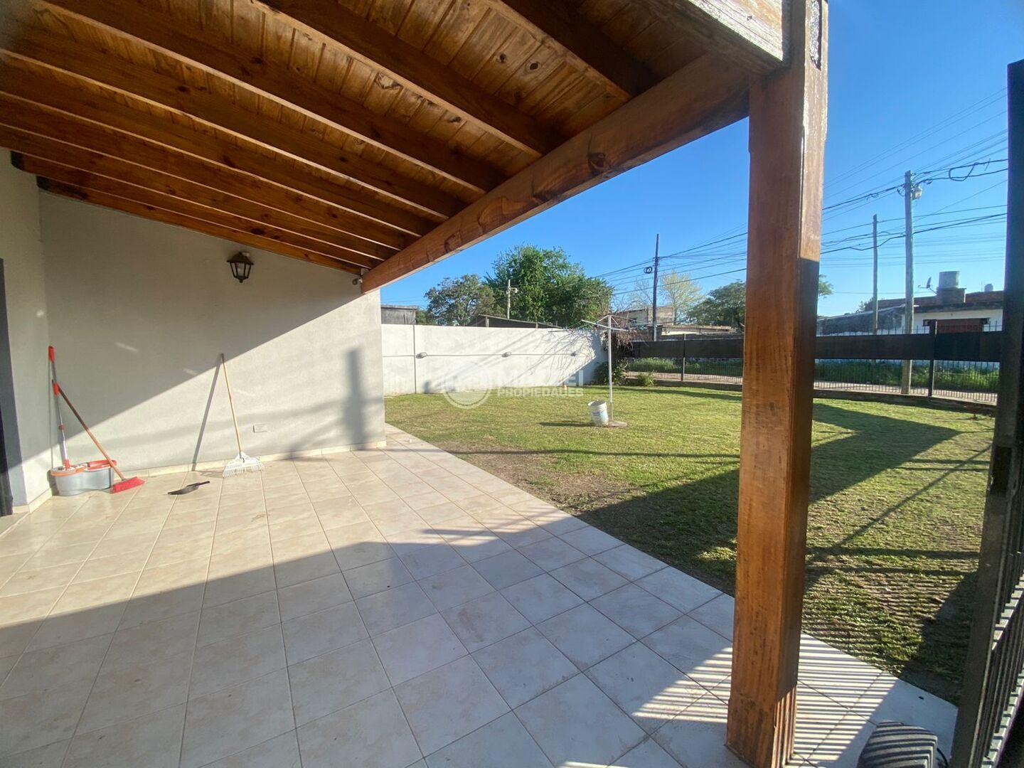 Impecable propiedad en alquiler. Muy luminosa. Desarrollada en una planta, cuenta con living comedor, cocina independiente con mesada con bacha, mueble bajo mesada, ventana al lavadero y salida independiente, tres dormitorios y baño completo. Galería o cochera cubierta con techo de chapa y madera a la vista interior. Parque amplio, cercado totalmente con rejas y muro perimetral. ¡La ubicación en esquina le da más amplitud, por la vista!