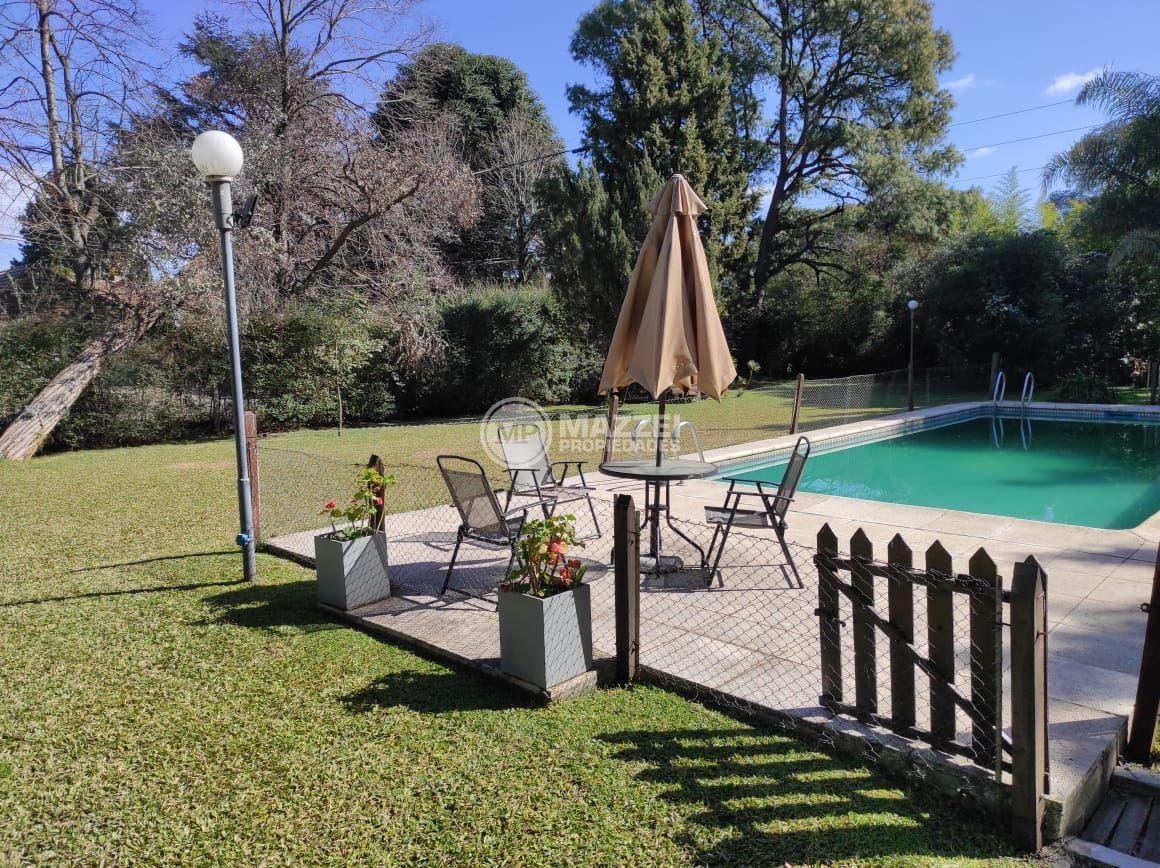 Alquiler temporario: No se alquila por día. Se alquila por mes mas gastos.Living comedor con TV plasma, cocina con microondas. Dos dormitorios. Quincho con parrilla y pileta de 10 x 4 mts. Casa de huéspedes con 3 amb y baño.