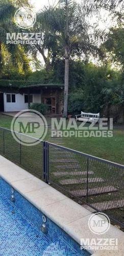 Exterior: Dependencia: un dos ambientes con cocina y baño completo. Pileta de 10x4 con playa húmeda y solárium. Profundidad 1mt a 1.90mt. Baño. Jardín y fondo libre. Entrada de auto. Garage.