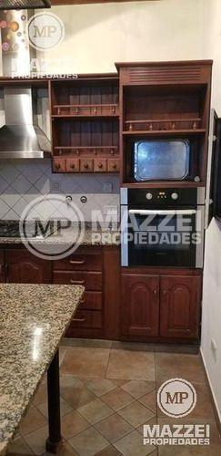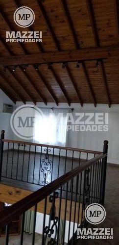 PB: Amplio living - comedor, pisos de cerámicas rusticas, circuito cerrado de cámaras, ventanales con vidrios dobles DVH. Escalera al primer piso con herrajes de hierro forjado y pasamanos de madera, lámpara de techo rueda de carreta de madera, hogar a leña, ventanales con vidrios dobles DVH. Cocina con bajo y alto mesada de madera algarrobo, anafe y horno empotrado, piso cerámica rustica, desayunador, extractor acero inoxidable, estilo campana. Dormitorio en suite con hidromasajes. Pisos flotantes, placard moderno empotrado, respaldar a medida con mesas de luz flotantes, vestidor.