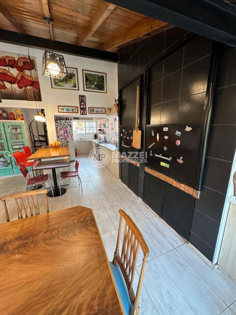 El amplio living comedor se integra a una cocina moderna que cuenta con dos parrillas integradas. La cocina está equipada con mesada de Silestone, bacha doble y bacha simple, además de un hogar a leña y un horno de barro.