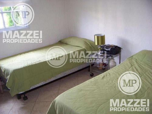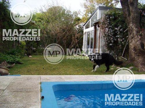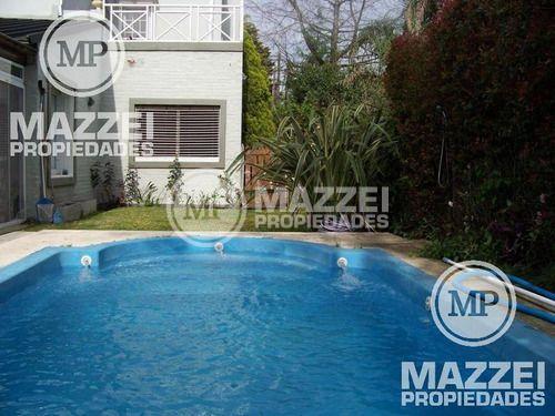 En la parte externa gran quincho cerrado con carpintería de aluminio. Parrilla con muy buen horno pizzero. Pileta de fibra a nivel. Entrada para vehículos y garage techado para un auto. Galería, jardín y fondo libre.