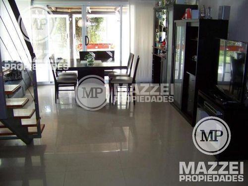 PB: Living comedor y cocina integrada, con barra y muebles completos. Toilette de recepción. Dos dormitorios con placard. Baño completo con ducha. Lavadero.
