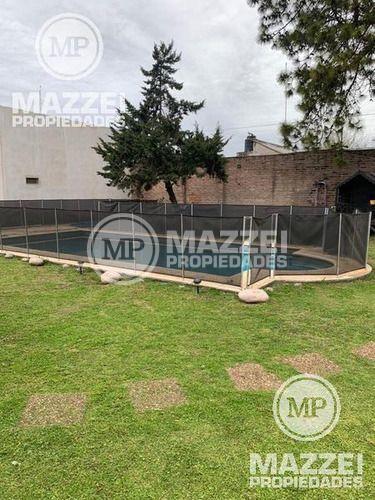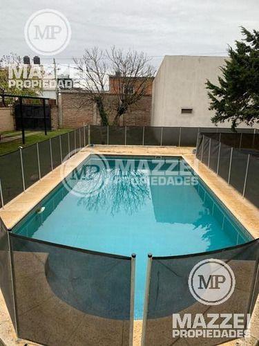 Exterior: Pileta de 8x4 con venecitas. Entrada de auto, capacidad 4 vehículos. Jardín y fondo libre. La venta de este inmueble está sujeta a la tramitación del Código de Transferencia de Inmuebles (COTI), de conformidad con la normativa vigente (Res. AFIP 2371/08, 2439/08 y ccs.) por parte del propietario.