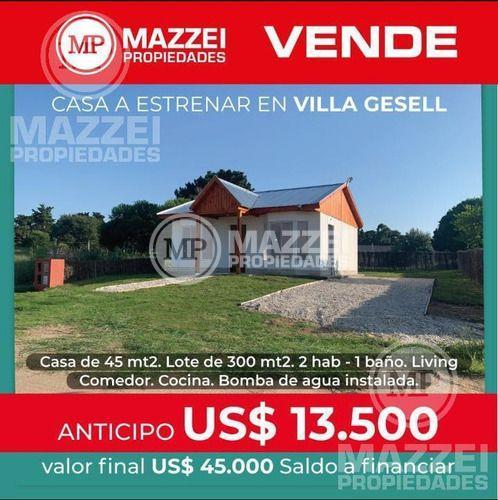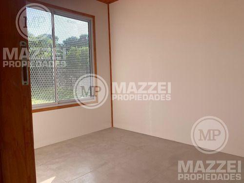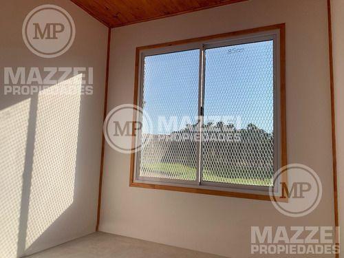 Casa a estrenar en Barrio Médanos con financiación en hasta 24 cuotas. Dos dormitorios, living comedor, cocina y baño. Entrada vehicular, parquizada y cercada.