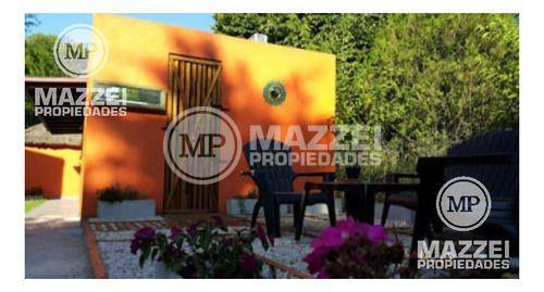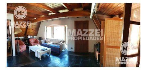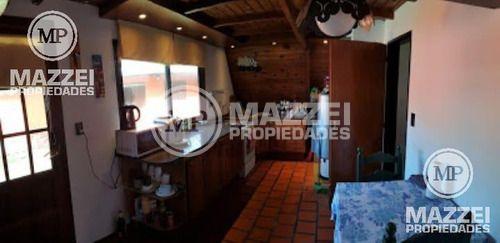 En la casa Alpina se encuentra equipada con lo siguiente: o Cocina equipada con cocina a gas, heladera con freezer y freezer adicional de 4 cajones. o Living con vista al parque calefaccionado con estufa a gas. o 01 baño completo en planta baja o Galería cerrada vidriada con vista al parque de 6x3 con pared revestida en troncos y aire acondicionado frio/calor o En primera planta cuenta con dos dormitorios: Dormitorio principal con balcón al frente con aire acondicionado frio calor y estufa tiro balanceado a gas 1 baño completo ? Dormitorio auxiliar con vista al parque con calefacción estufa tiro balanceado a gas.