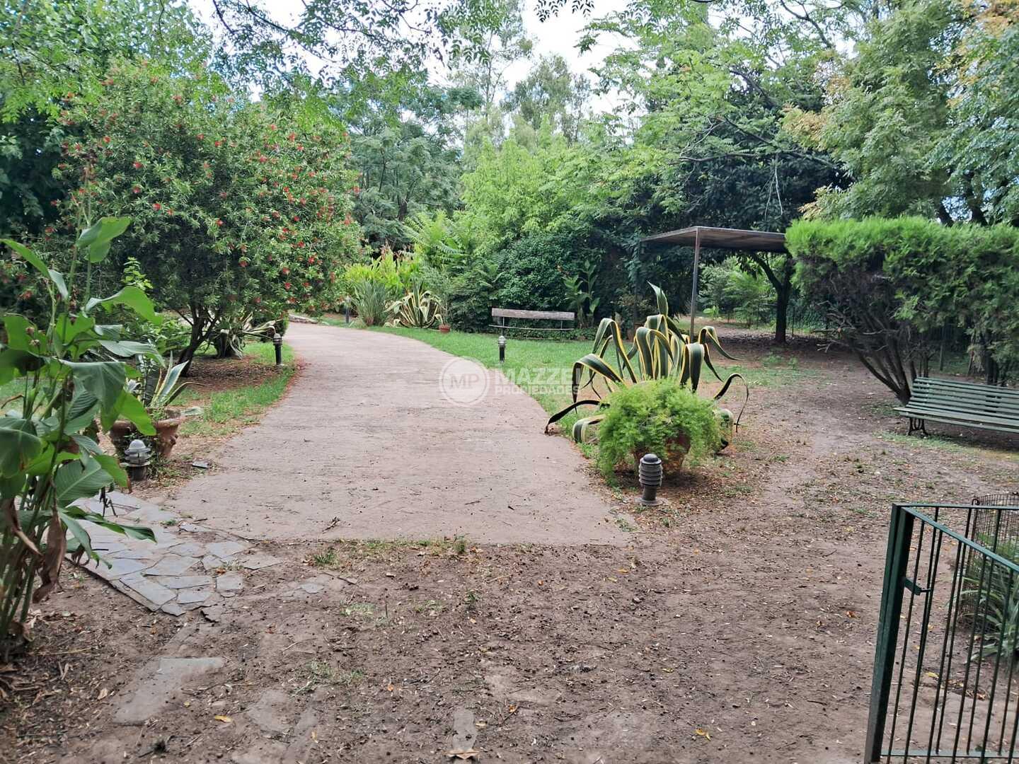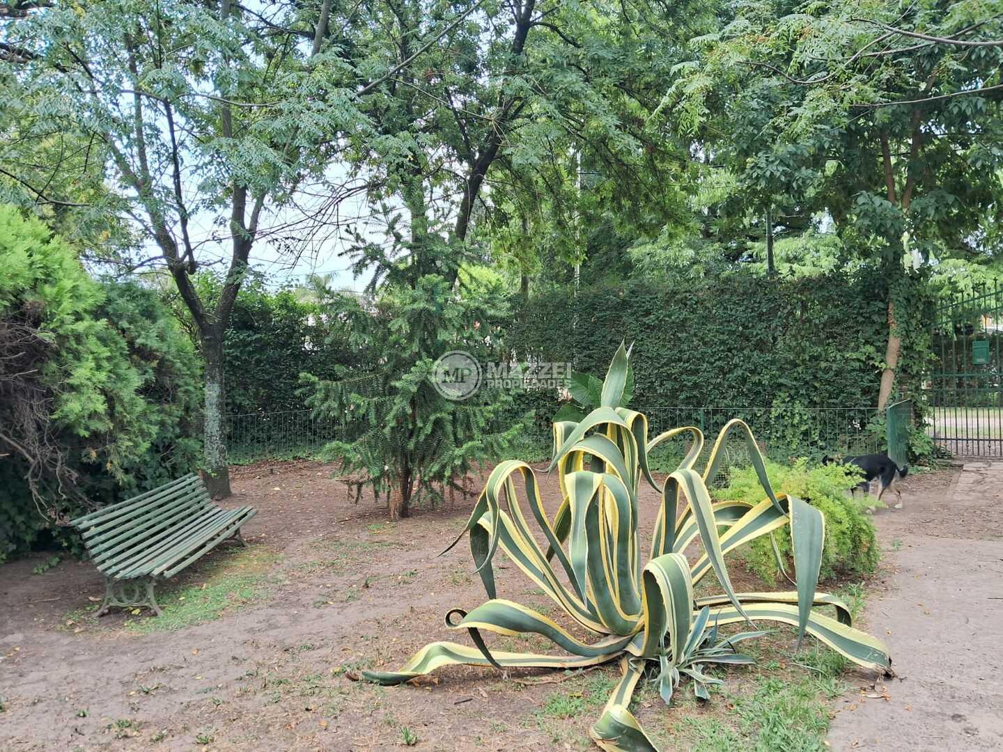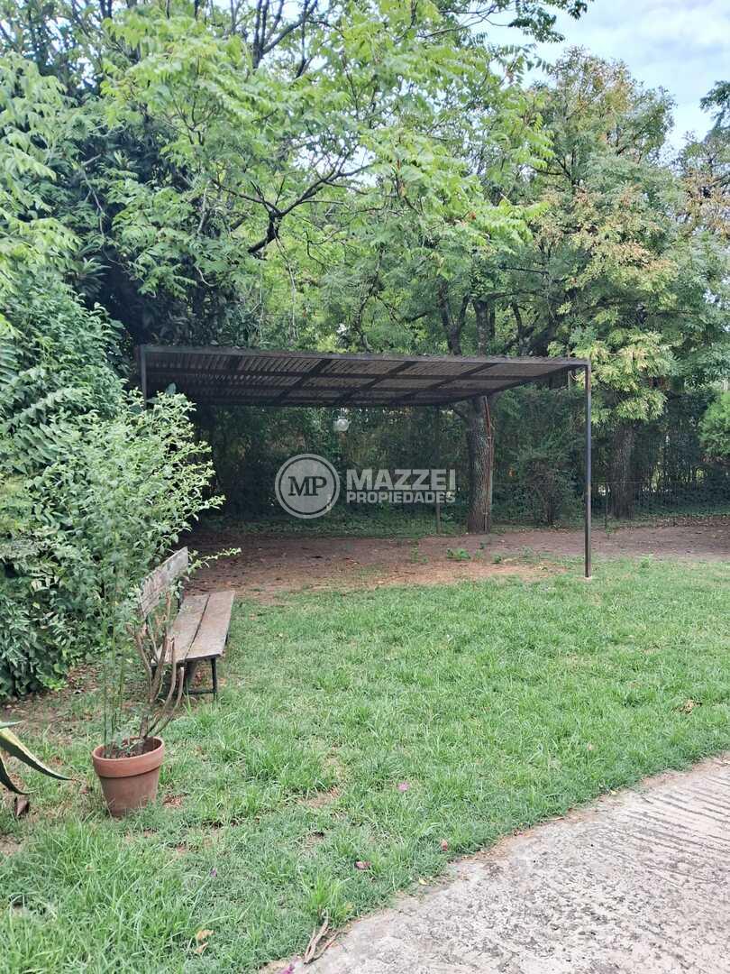 Amplio parque con variedad de plantas y arboleda. Pérgola para 2 vehículos. Espacio cercado para mascotas.