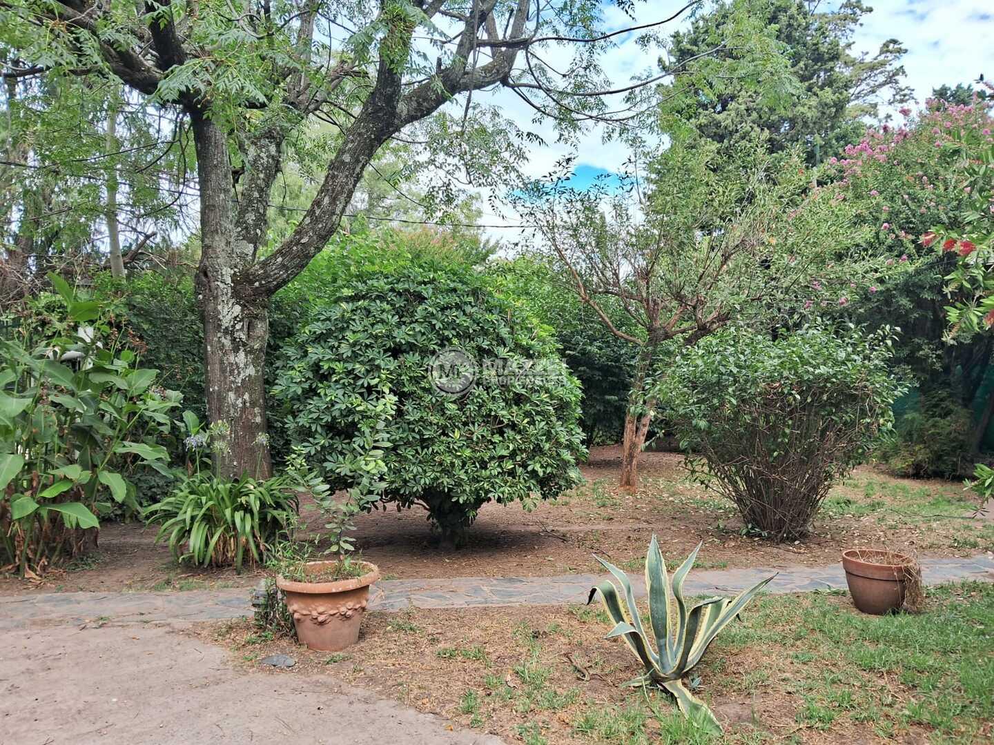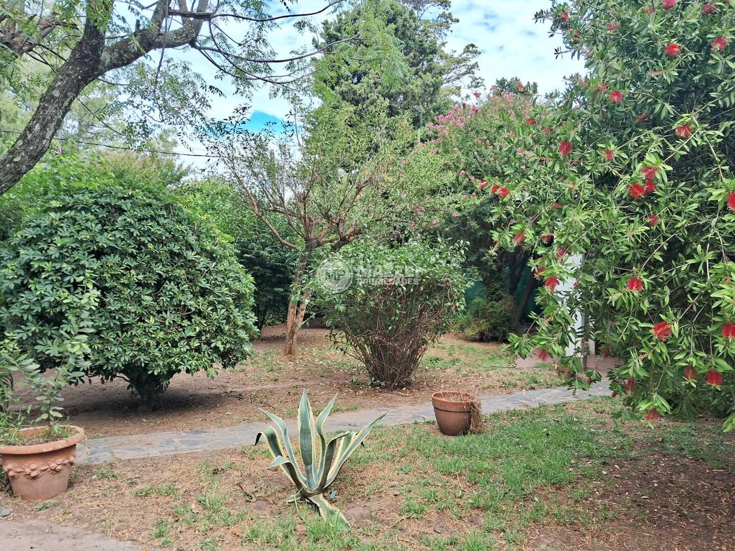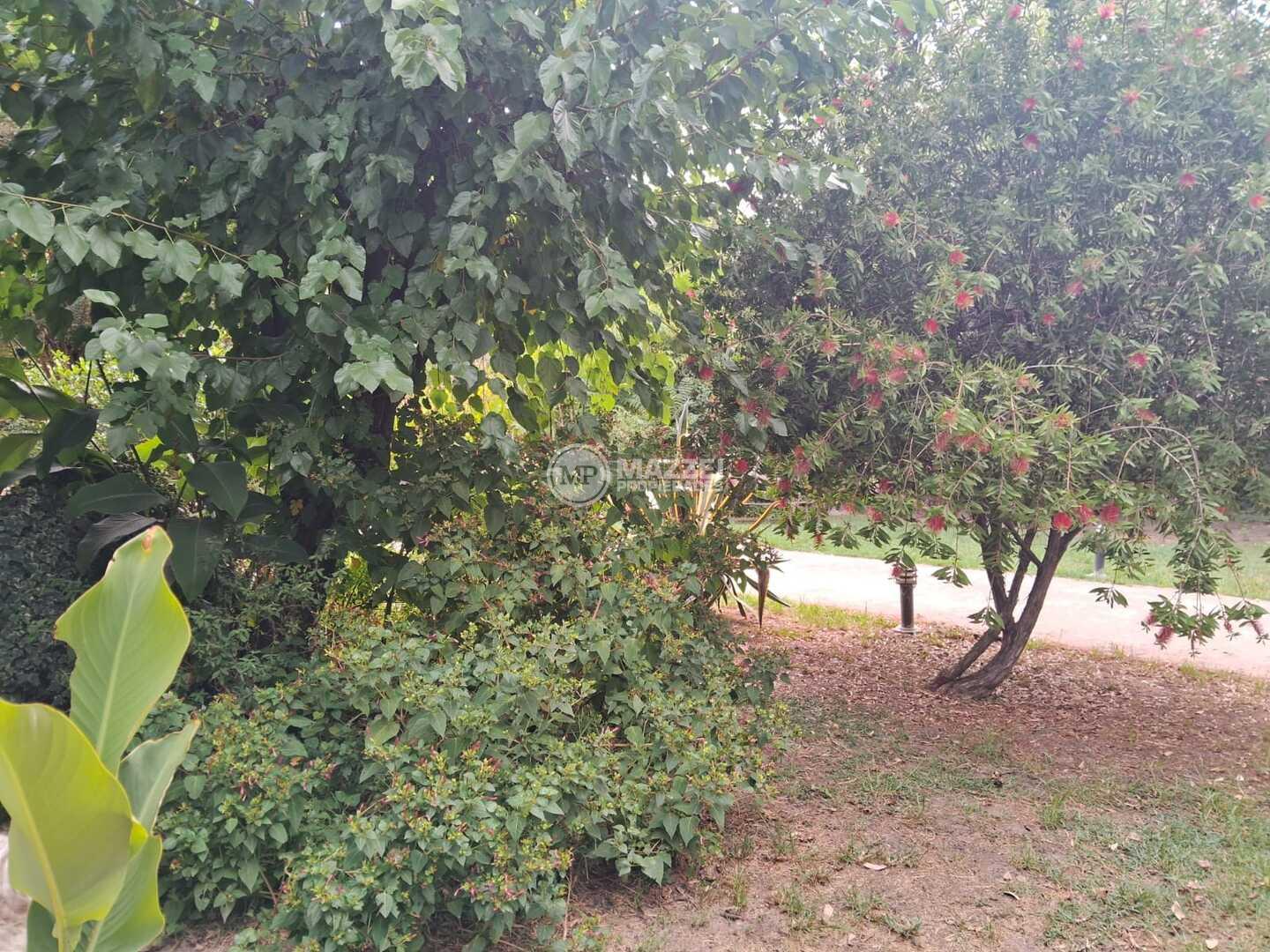 Amplio parque con variedad de plantas y arboleda. Pérgola para 2 vehículos. Espacio cercado para mascotas.