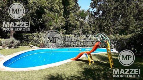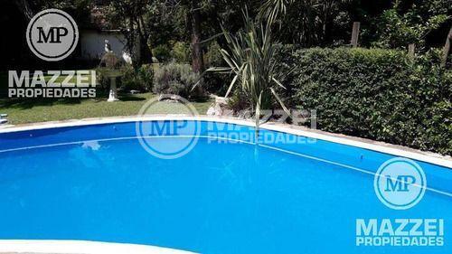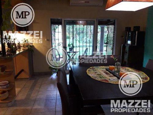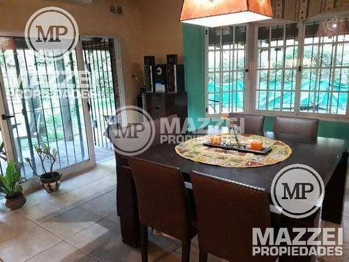Living, comedor y cocina. Tres dormitorios, el principal en suite. Baño. Galería. Quincho con parrilla. Pileta. Entrada de auto. Jardín y fondo libre.