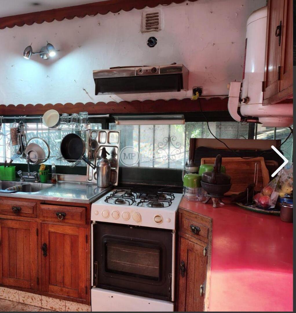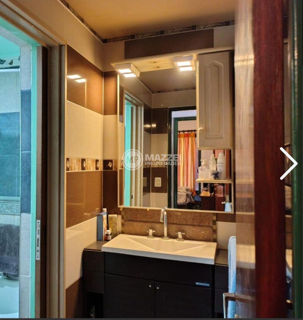Baño completo con antebaño y bañera. Cocina independiente con mesada de acero inoxidable con doble bacha, mueble bajo mesada y alacena.