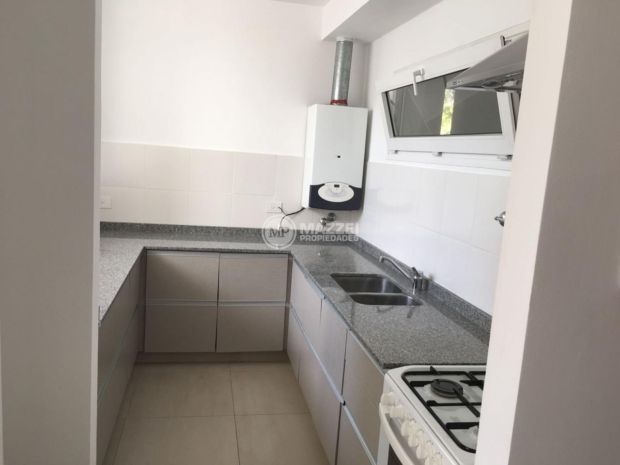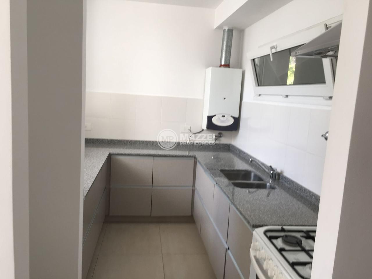 En la planta baja se encuentra un cómodo living-comedor con grandes ventanales de piso a techo, que brindan excelente luminosidad y acceso a un balcón terraza. Cocina equipada con muebles bajo mesada y alacenas en melamina blanca, y mesada de granito gris Mara. Toilette de recepción bajo escalera.