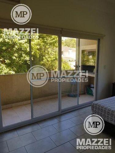 Departamento en primer piso en excelente ubicación y entorno, zona de condominios y barrios cerrados, 44 m2 súper amplio, cocina comedor amoblado, dormitorio con vista al exterior y muy luminoso, baño completo, placard doble, pisos en porcellanato.- Todos los servicios, seguridad 24 hs.