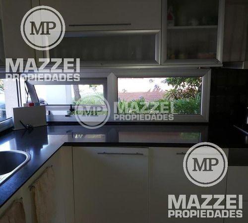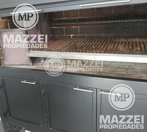 Exterior: Quincho de 6x3 integrado a la vivienda con cerramientos de aluminio, black out, mesada de granito negro con bacha de acero, muebles bajo mesada y puertas. Parrilla de gran tamaño con portón levadizo, fogón, lugar de guardado debajo con puertas. Galería trasera. Baño. Garage. Entrada de auto. Baulera.