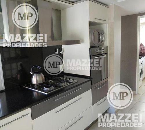 PB: living con pisos de porcelanato, luces led en el techo, muy luminoso y con cortinas black out. De comedor se puede utilizar el quincho. Cocina con horno empotrado, mesada de granito negro, muebles bajo y sobre mesada realizados a medida, extractor Aristón, anafe integrado a la mesada de 4 hornallas. Toilette de recepción. Lavadero. Baño completo.