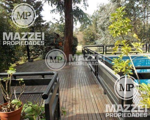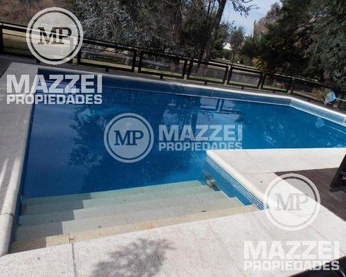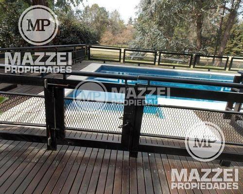 Quincho con parrilla y horno a leña. Pileta cercada y climatizada con ducha y deck. Entrada para vehículos con portón eléctrico. Garage cubierto.