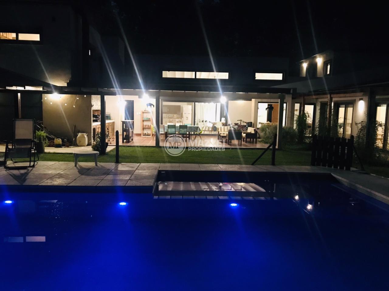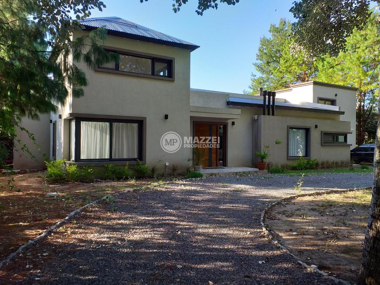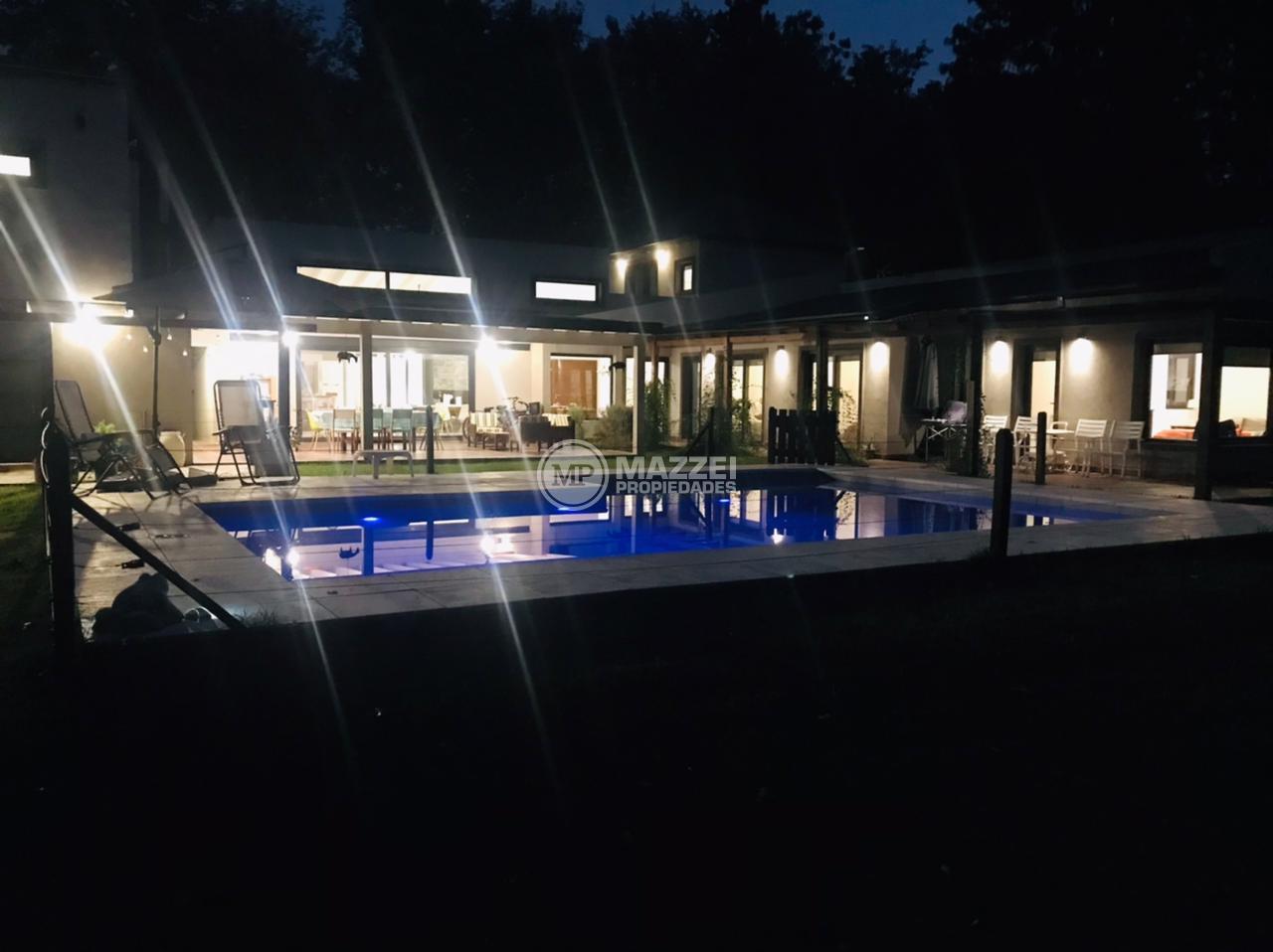 Hermosa casa desarrollada en dos plantas en exclusivo club de campo en Luján. Acceso tipo imperial exclusivo de la propiedad, con espacio techado para dos autos, al frente. Importante puerta doble ancho.