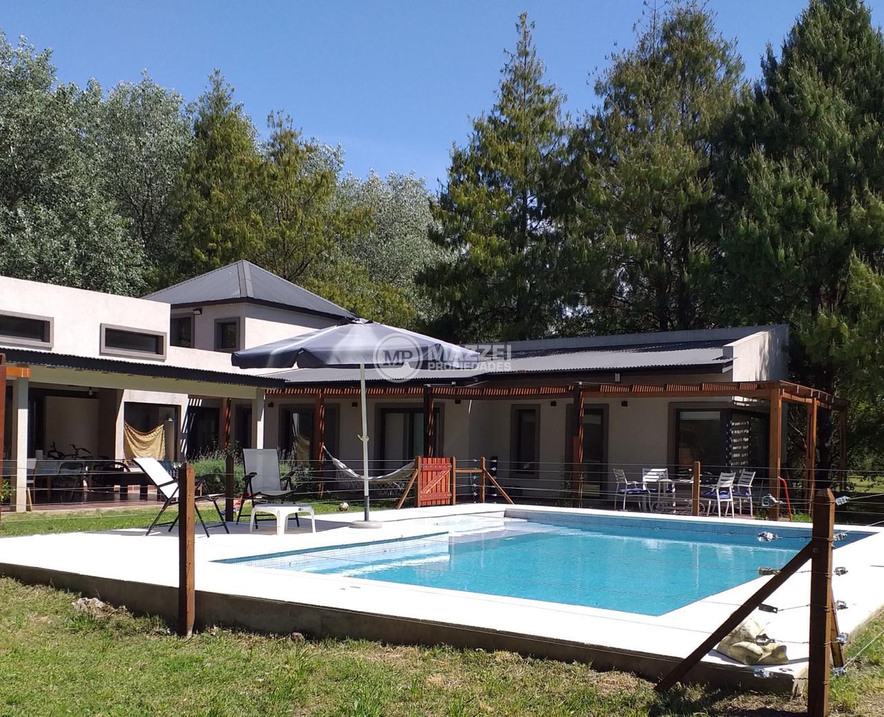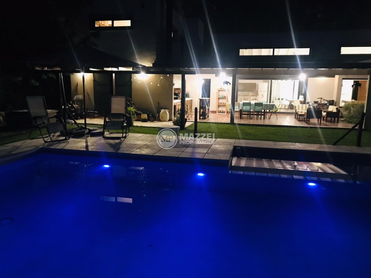 Galería techada, en L dando amplitud a la vista al parque, tiene parrilla, horno, mesada y ventiladores de techo. Piscina cercada, con iluminación nocturna, playa húmeda y solárium.