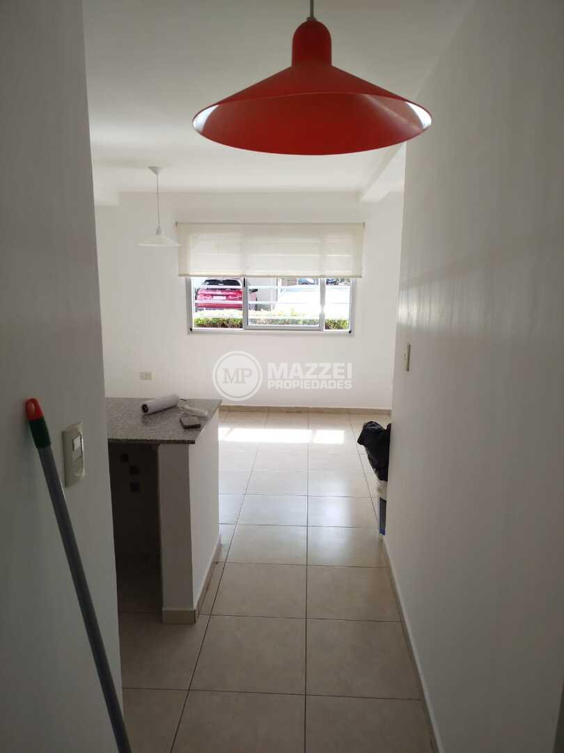 Comedor y cocina integrada, con bajo mesada. Un dormitorio. Baño completo con bañera. Espacio guardacoche