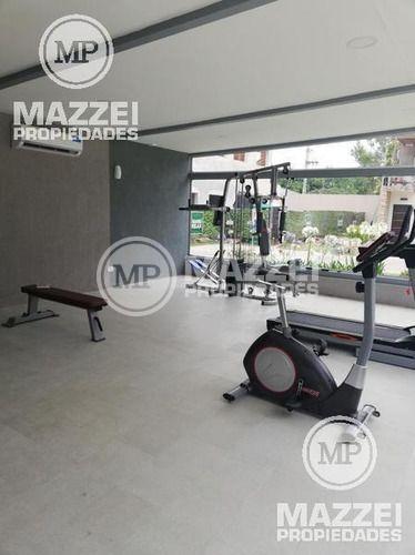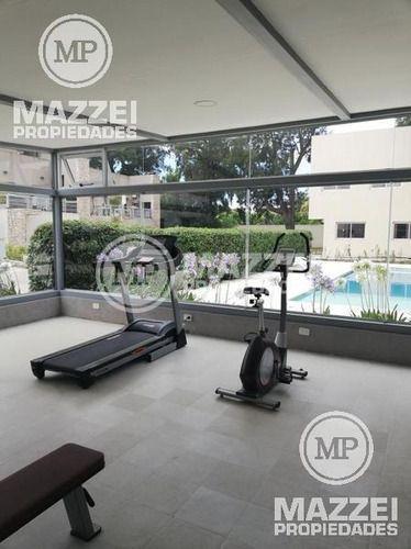Posee los siguientes amenities: 2 piscinas (una de ellas climatizada), Solarium. Vestuarios, sauna y ducha finlandesa. S.U.M. Gimnasio con sala de spa. Plaza para niños. Estacionamiento. Y como servicios comunes el portón de ingreso automatizado, calles internas de hormigón e infraestructura subterránea. Bajas expensas.
