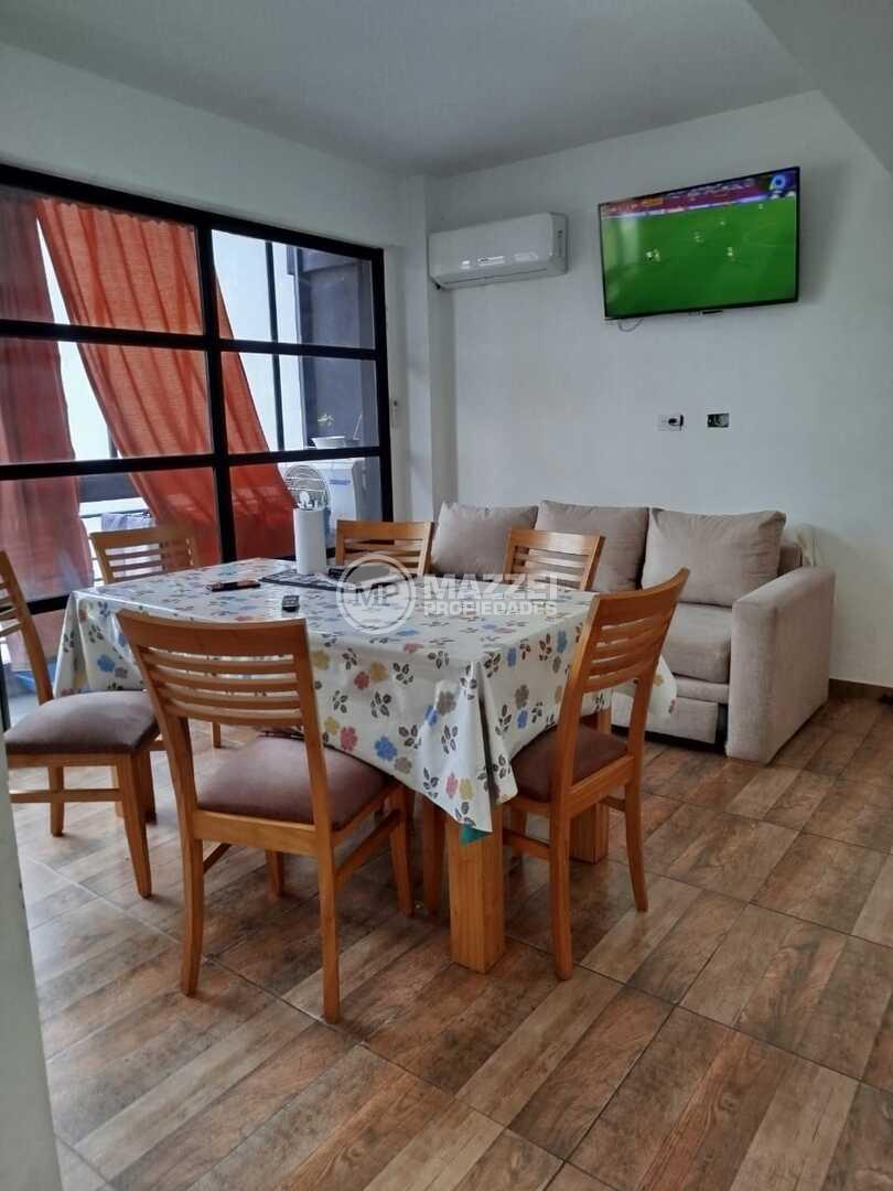 La propiedad cuenta con dos ambientes: un dormitorio, baño completo con bañera, y una cocina integrada al living comedor con salida a un amplio balcón muy luminoso. El balcón cuenta con mampara, lo que brinda protección frente a la lluvia y el viento, y permite utilizarlo también como práctico espacio de guardado.