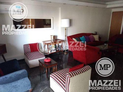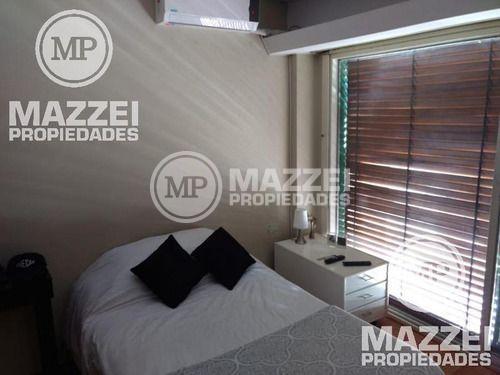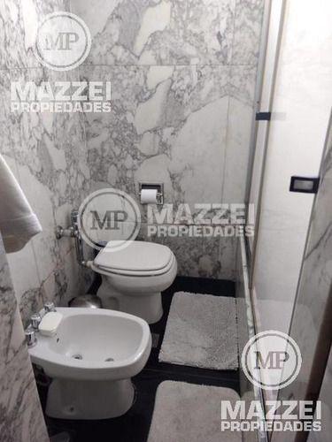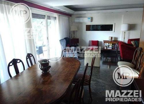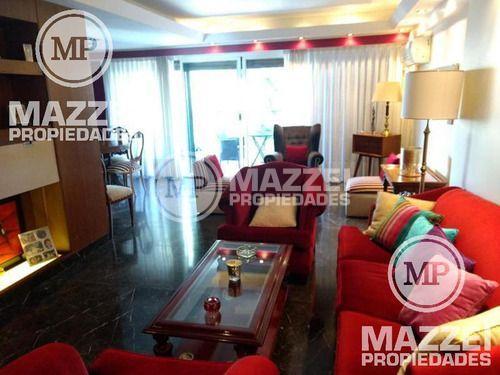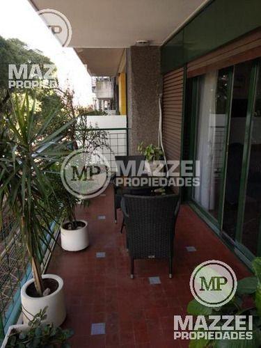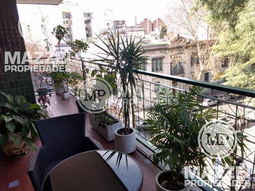 Living en L, balcón a lo largo del mismo con vista a la plaza de Flores. Cocina-comedor diario. Tres dormitorios, uno de ellos en suite. Baño. Pisos de cerámica, mármol y flotante.