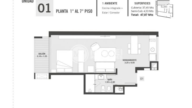 Venta de Departamento 1 AMBIENTE en Palermo, Capital FederalMampostería de ladrillos con terminaciones en yeso de primera calidad para recibir pintura de obra. Cielorrasos aplicados de yeso o suspendidos con metal desplegable en sistema tradicional de yeso. En los ambientes pisos flotantes y/o porcelanato de diseño de primera calidad.