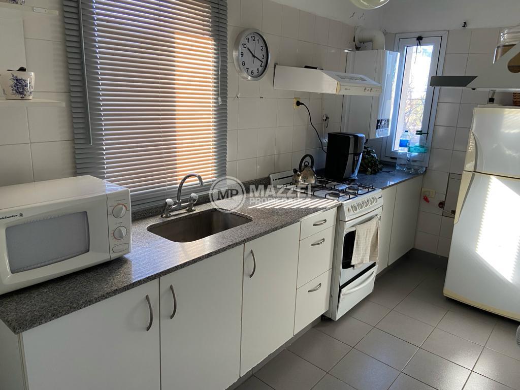 Cocina equipada con artefacto de cocina a gas natural, amoblamientos de cocina en melamina blanco con mesada en granito y espacio para lavarropas. Balcon. Baño completo con bañera. Piso revestido en cerámicos. Dormitorio con placard. Edificio con dos ascensores y terraza .