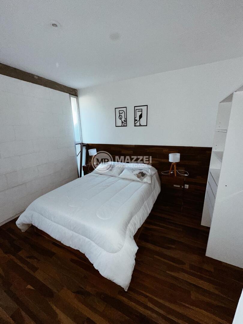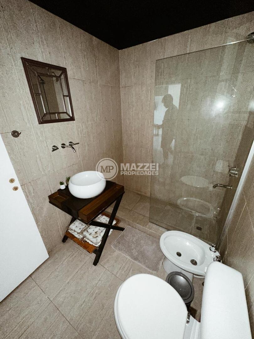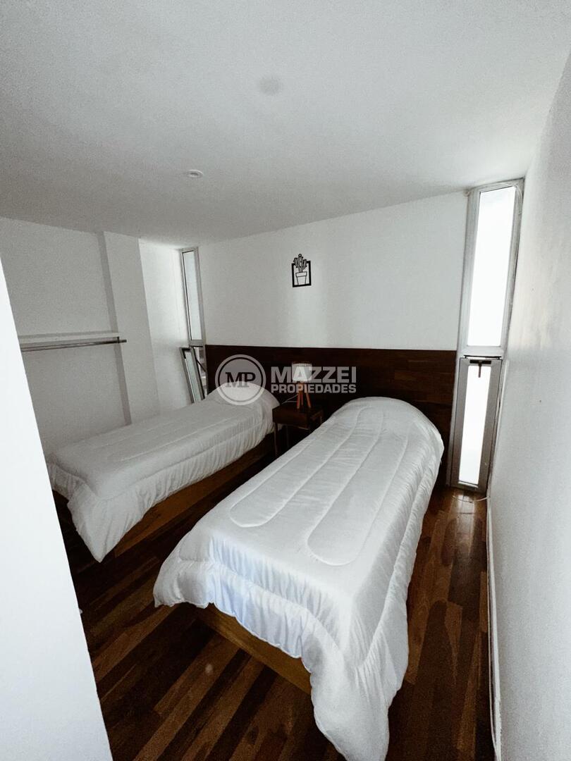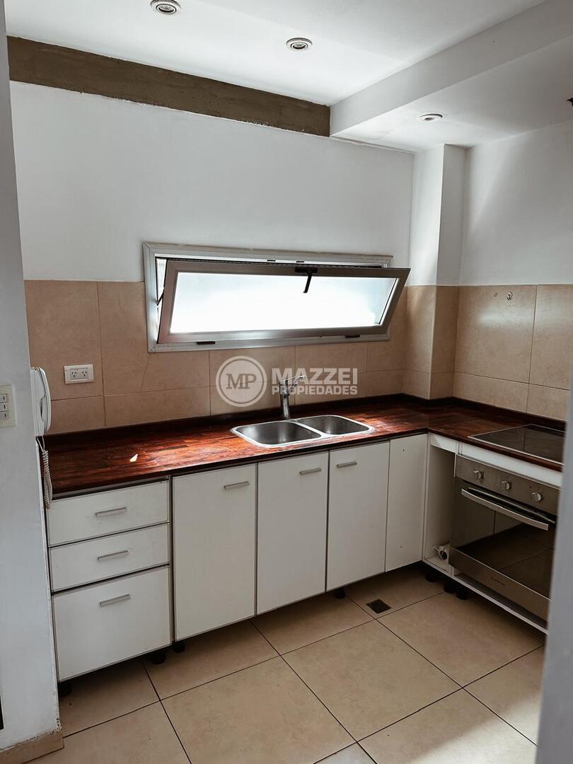 Ubicado en planta baja, consta de living comedor, toilette, cocina con mesada con bacha, mueble bajo mesada, anafe y horno eléctrico, dos dormitorios, baño completo, patio de 25 m2. La unidad incluye cochera. Ambientes modernos y luminosos.