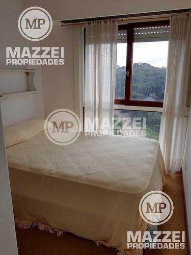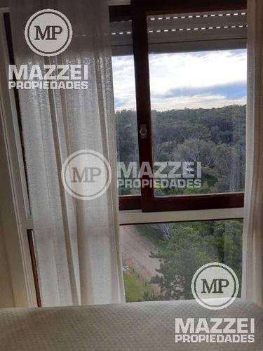 Luminoso departamento de 3 ambientes, living comedor, cocina separada, baño completo, toilette, 2 habitaciones. Se disfruta una espectacular vista que combina bosque y mar. Muy luminoso, cómodo y una excelente ubicación. Estacionamiento. Cochera cerrada opcional