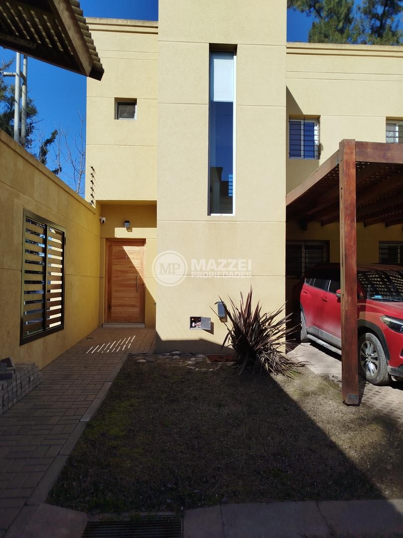 Jardín delantero, jardín trasero de uso exclusivo, cochera semicubierta y cerco electrificado.