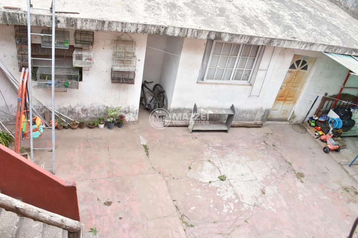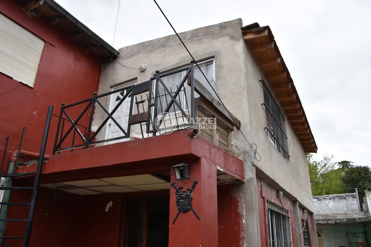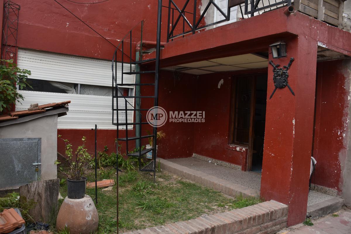 A la planta alta se accede por escalera caracol en el frente o por escalera de material en el fondo de la propiedad. Allí hay un balcón terraza en el frente, al ingresar encontramos un amplio living integrado a la cocina, un dormitorio, un baño completo con ducha. Pisos de madera.