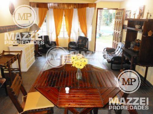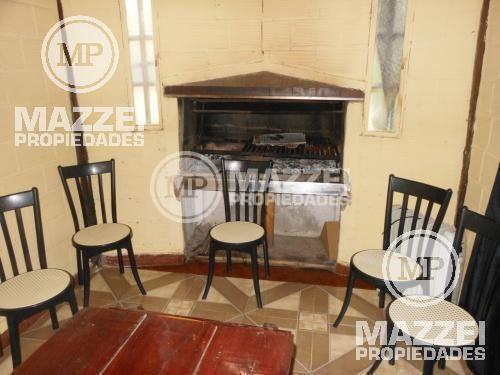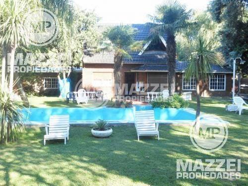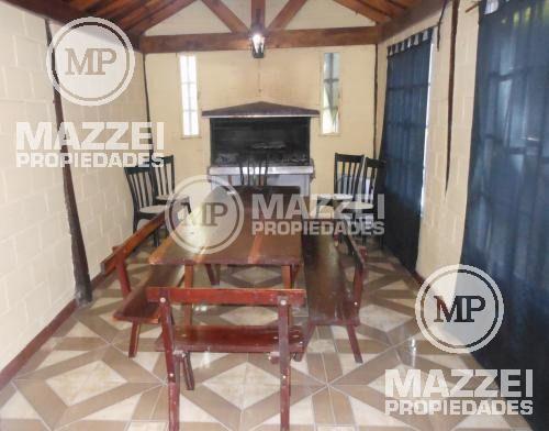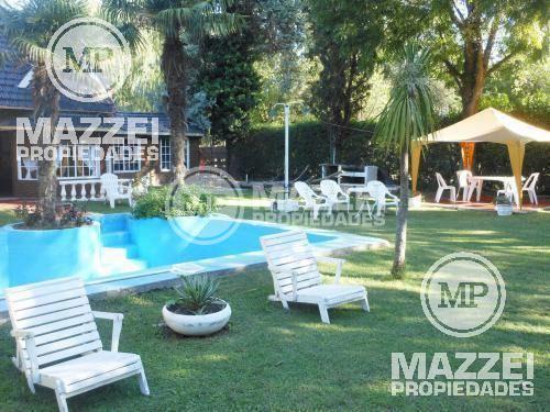 Quincho cerrado con parrilla, integrado a la casa principal. Pileta de 10 x 5 mts. Entrada lateral para vehículos. Pisos de cerámico. Servicio de luz y gas (garrafa). Fondo libre. Estado de conservación muy bueno.