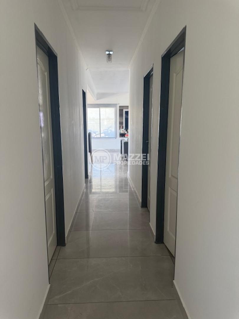 Cuenta con un luminoso living comedor con amplios ventanales, cocina equipada con mesada, tres dormitorios, siendo el principal en suite, y un baño completo adicional.