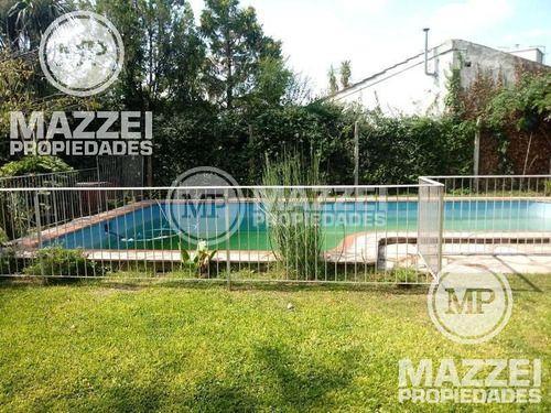 Exterior: jardín y fondo libre. Pileta de 10x5