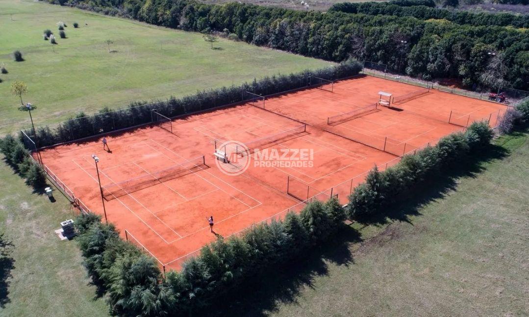 AREAS COMUNES: Sector Deportivo · Club House con restaurante · Pileta · Sector parrillas · 4 canchas de fútbol 11 (con iluminación) · 1 cancha de hockey · 1 cancha de vóley · 4 canchas de tenis de polvo de ladrillo (con iluminación) · Área cardioprotegida