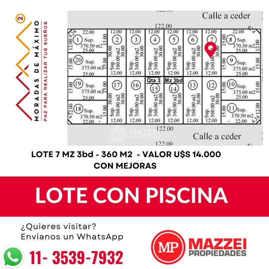 Excelente lote de 12x30 m2 con mejoras. Alambrado perimetral, pileta de 3x6, pozo de agua y pequeño depósito de material.