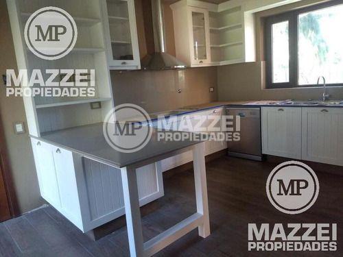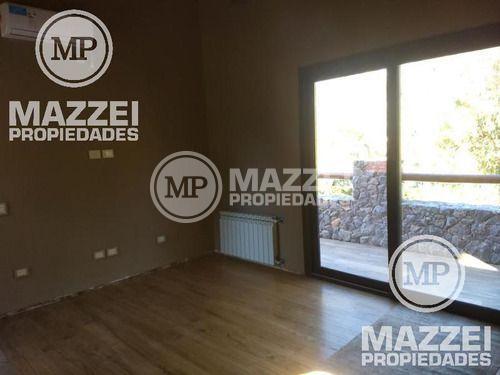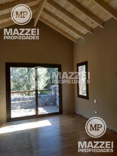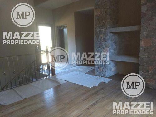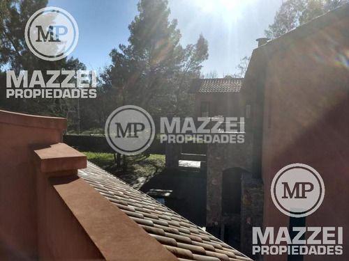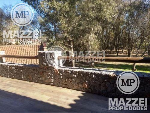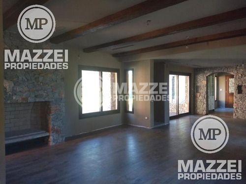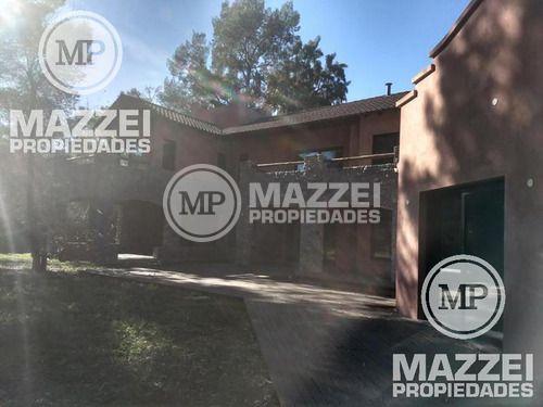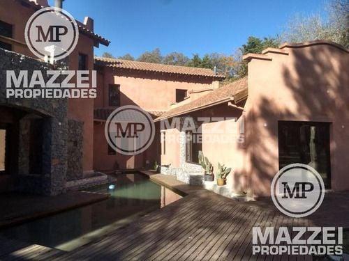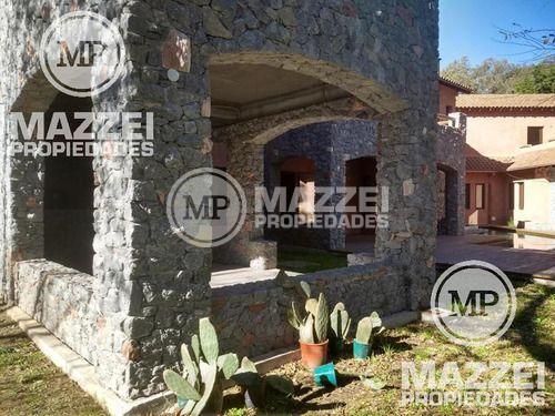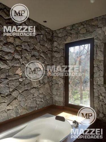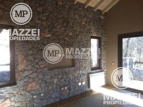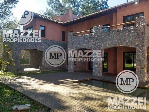 Se observan en todos su lados piedras rusticas, la misma tiene un lote amplio. Techo con teja opaca. Distribuida en dos plantas con un diseño cálido y rustico. Pileta con deck. Cochera para tres autos y habitación de huésped. Quincho con parrilla y espacio para horno. Grupo electrógeno.