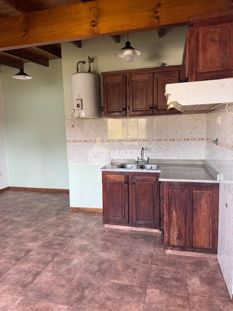 Cocina comedor integrado, con muebles alto y bajo mesada, termotanque en el sector, ventanales en amabas paredes que crean un espacio muy luminoso.